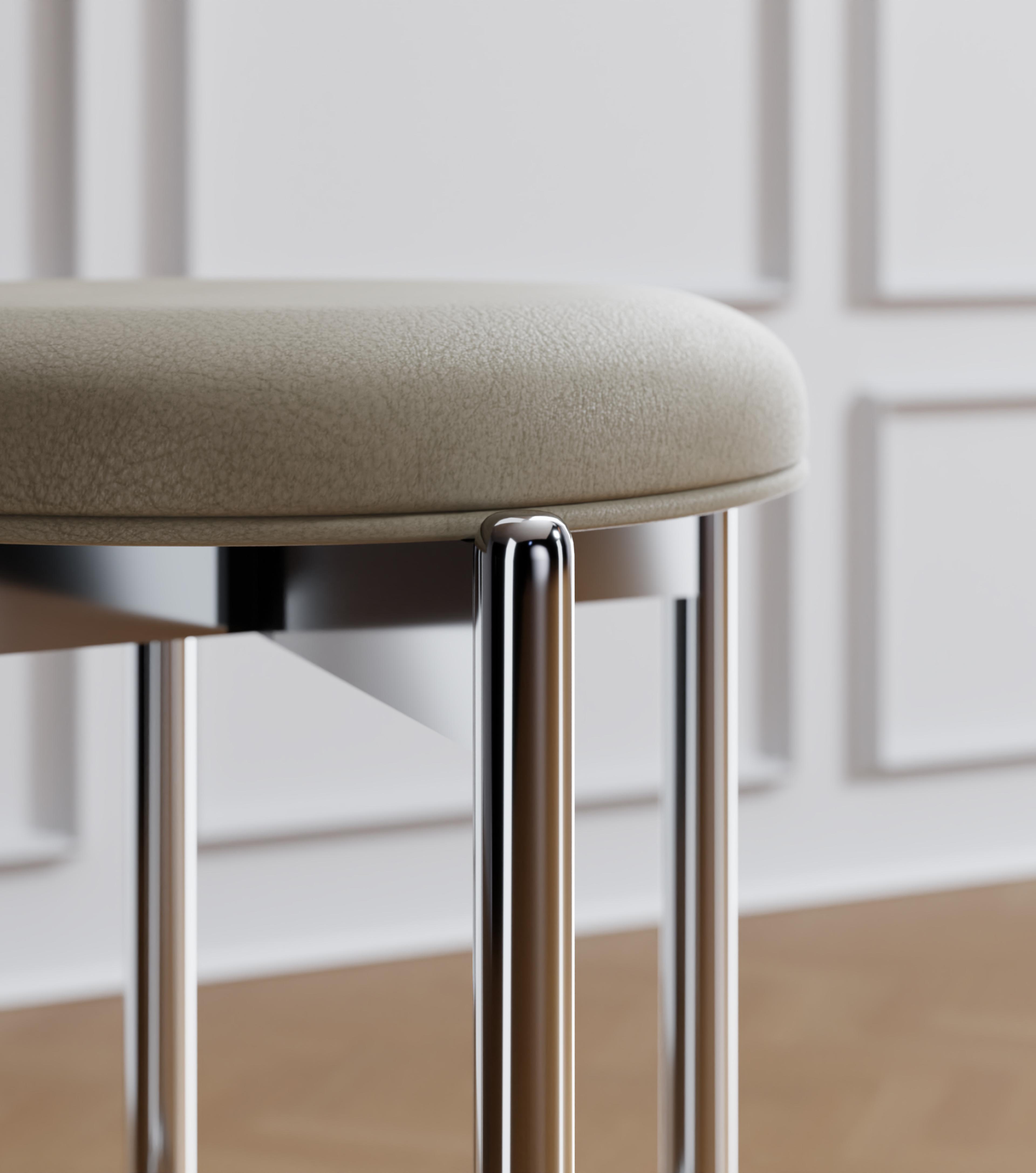 With our online configurator, you can select polished stainless steel or your choice of Dulux powder coats. For upholstery, you have the option of NOMI’s signature Italian leathers or Maharam Meld.