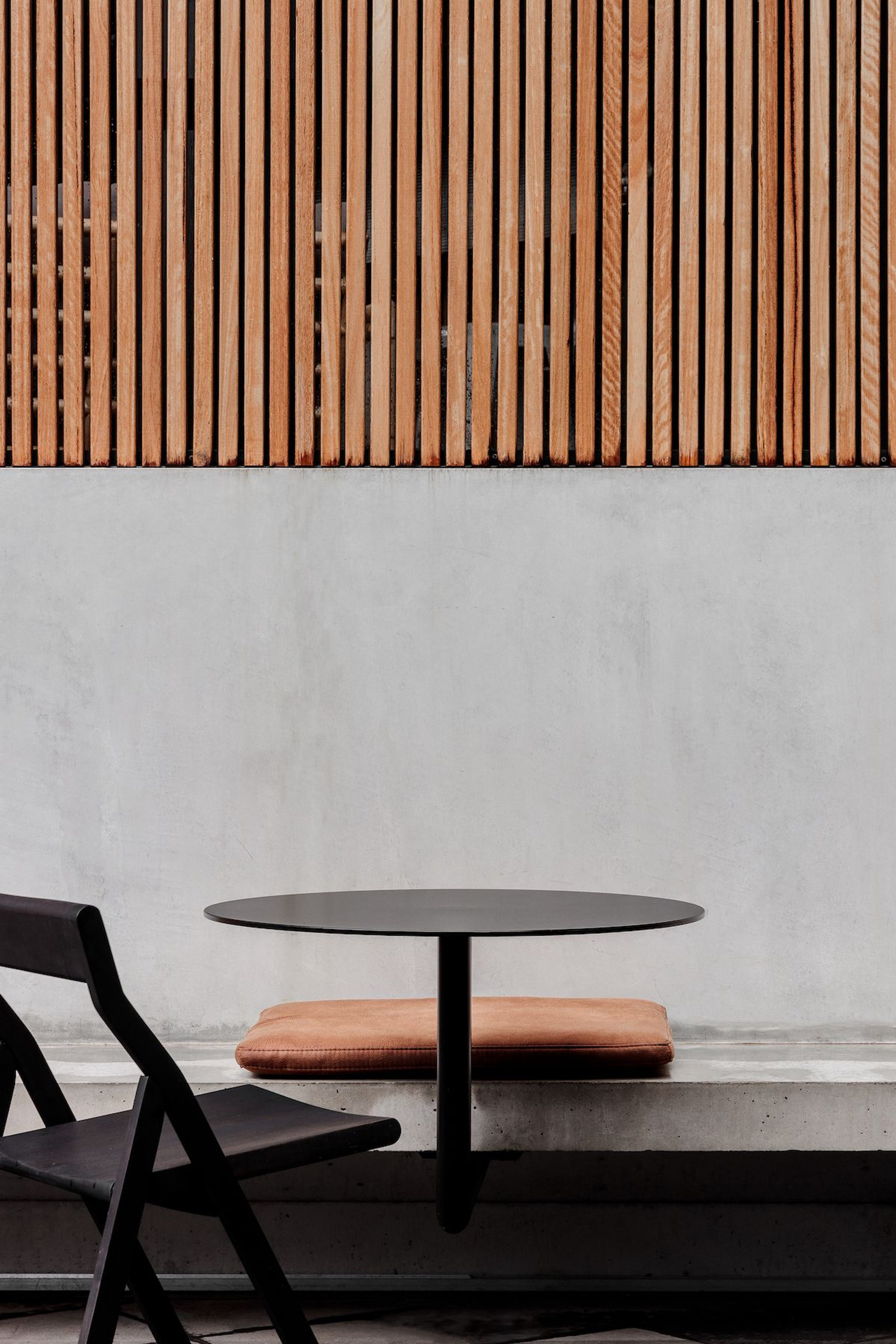 In addition, the venue is multi-functional and also used for events and private bookings—so the seating plan needed to be flexible. In addition to creating permanent corner booths and a long continuous bar, the firm chose the stackable, folding Storyteller’s chair as additional seating—choosing a natural finish for the interior spaces and a durable black exterior finish for the alfresco seating. “The design and the timber finish give the raw look of the interiors a softer edge,” adds Pete.