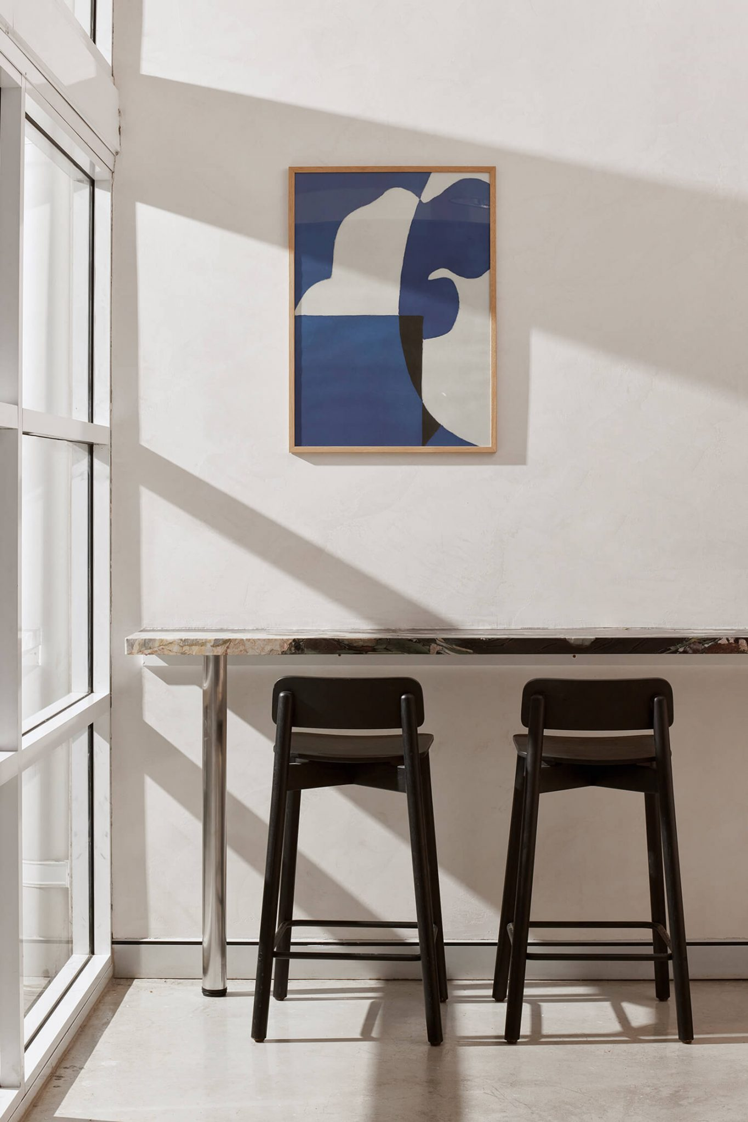 The Jasny Barstool in Black finish is a perfect choice for adding a hint of sophistication and contrast to this sunny nook.
