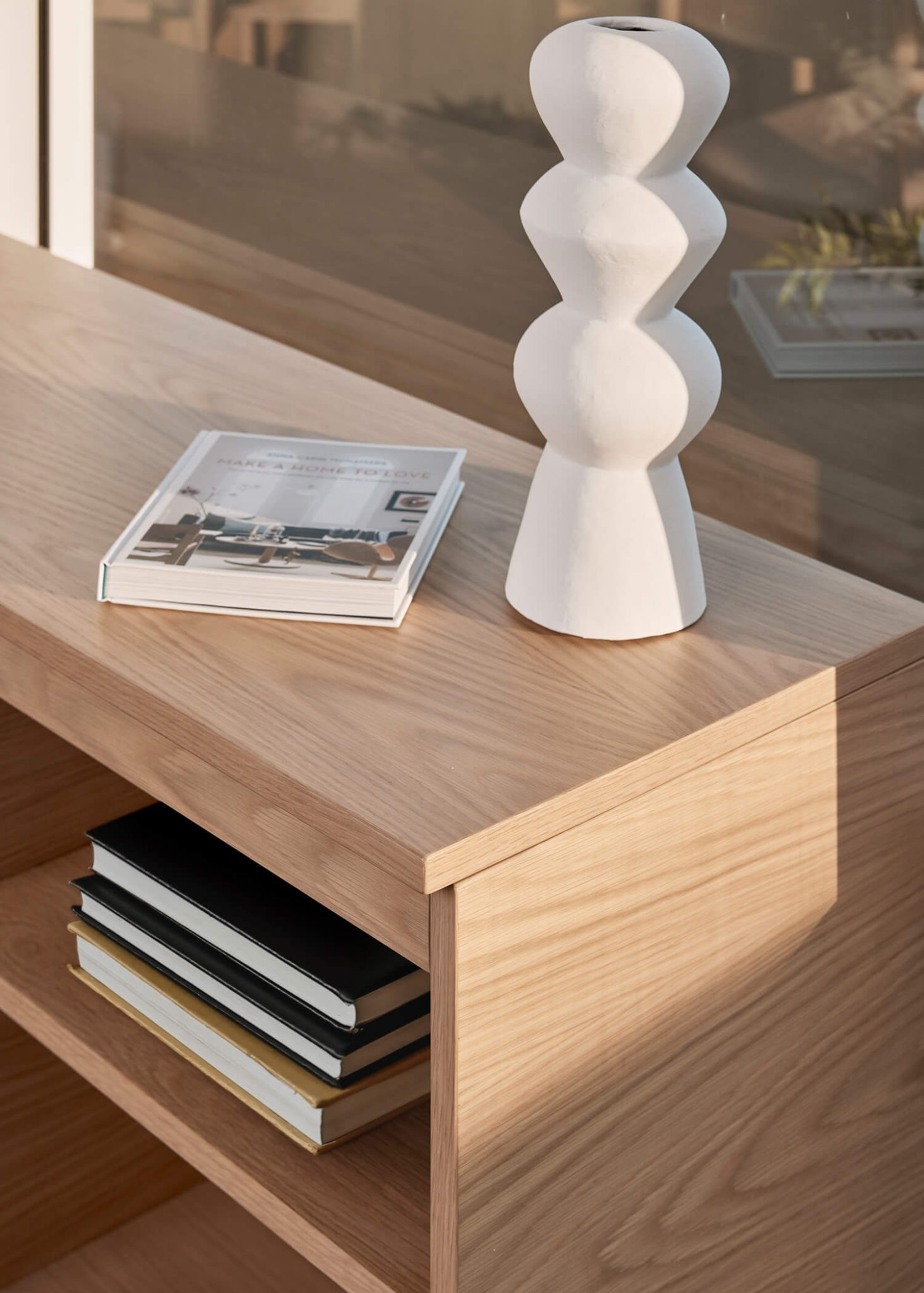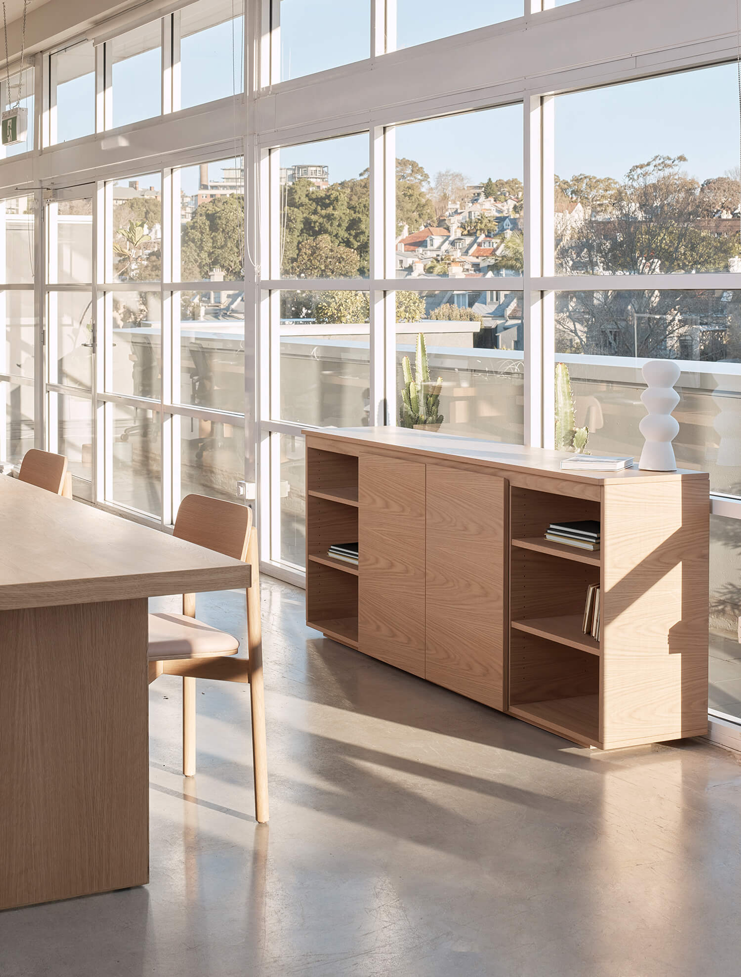 This Kura Sideboard is configured to fit this space and can be used to store and display various personal and professional items.