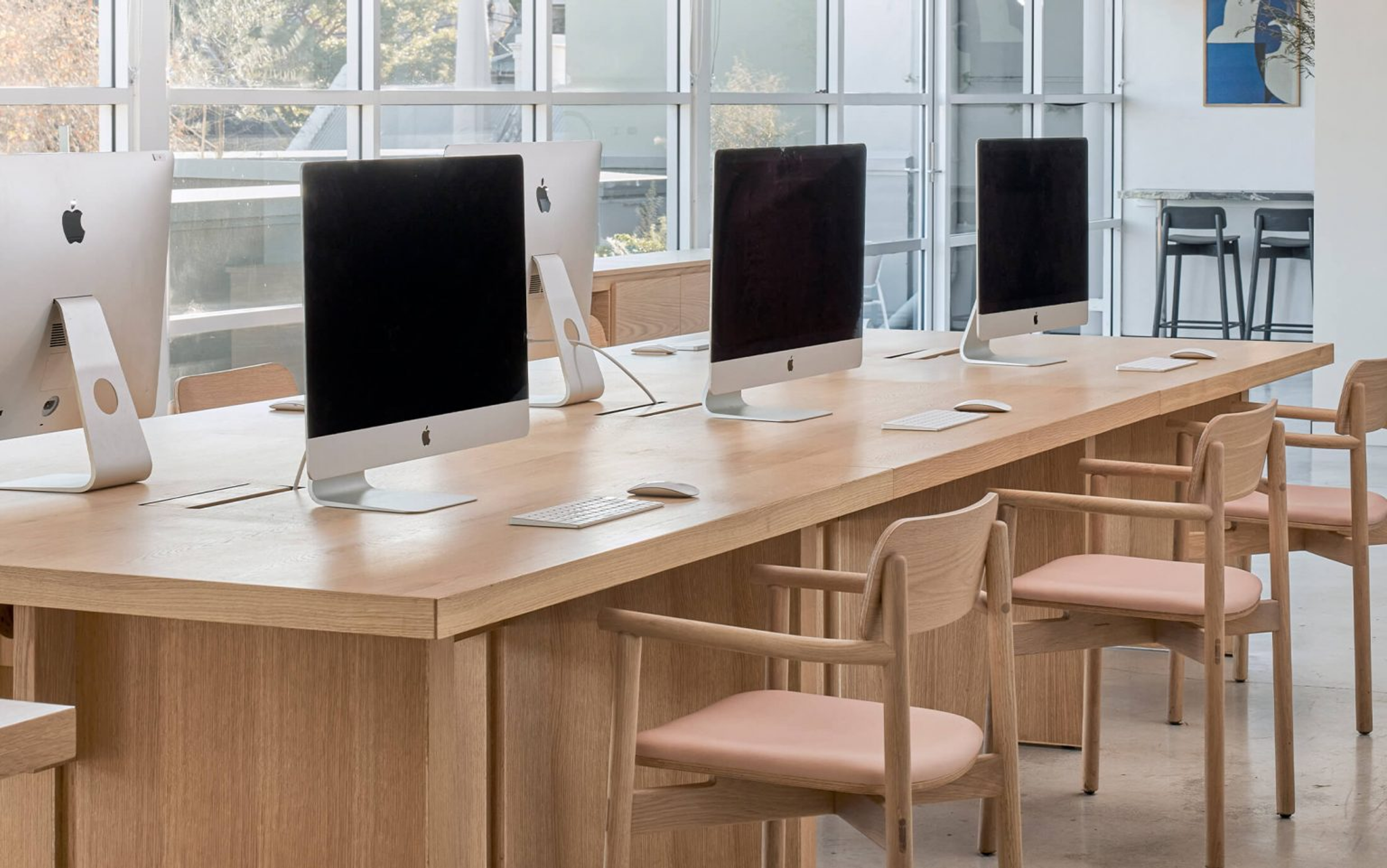 The space is anchored around our new Slot Workstation. Designed by English-Italian designer Edoardo Arricale, Slot is created to nurture productivity and spark creativity through its use of natural materials and classic design.