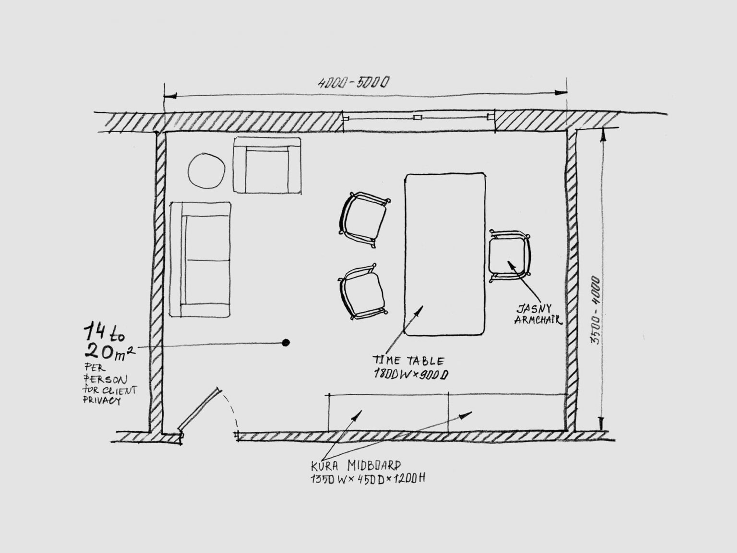 Companies that require enclosed office spaces for client privacy such as accounting, law or psychology firms may need to allocate 14 to 20 square metres per employee.