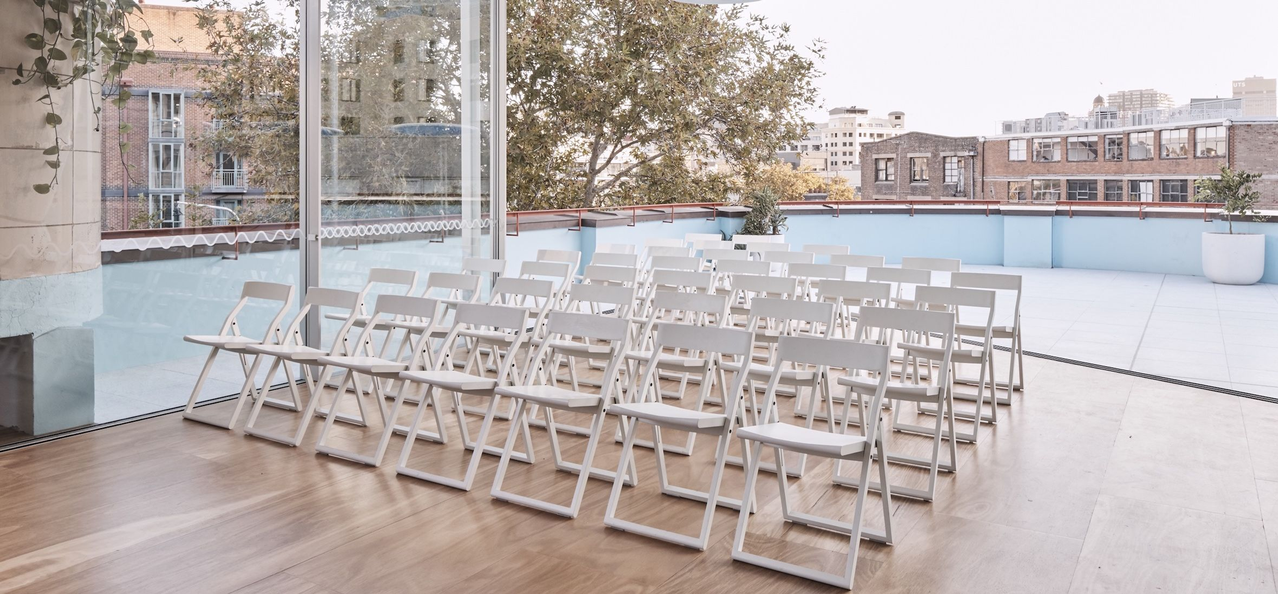 Located just at the edge of the city on the rooftop of Paramount House in Surry Hills, Paramount Recreation Club has been designed as a modern rooftop retreat.