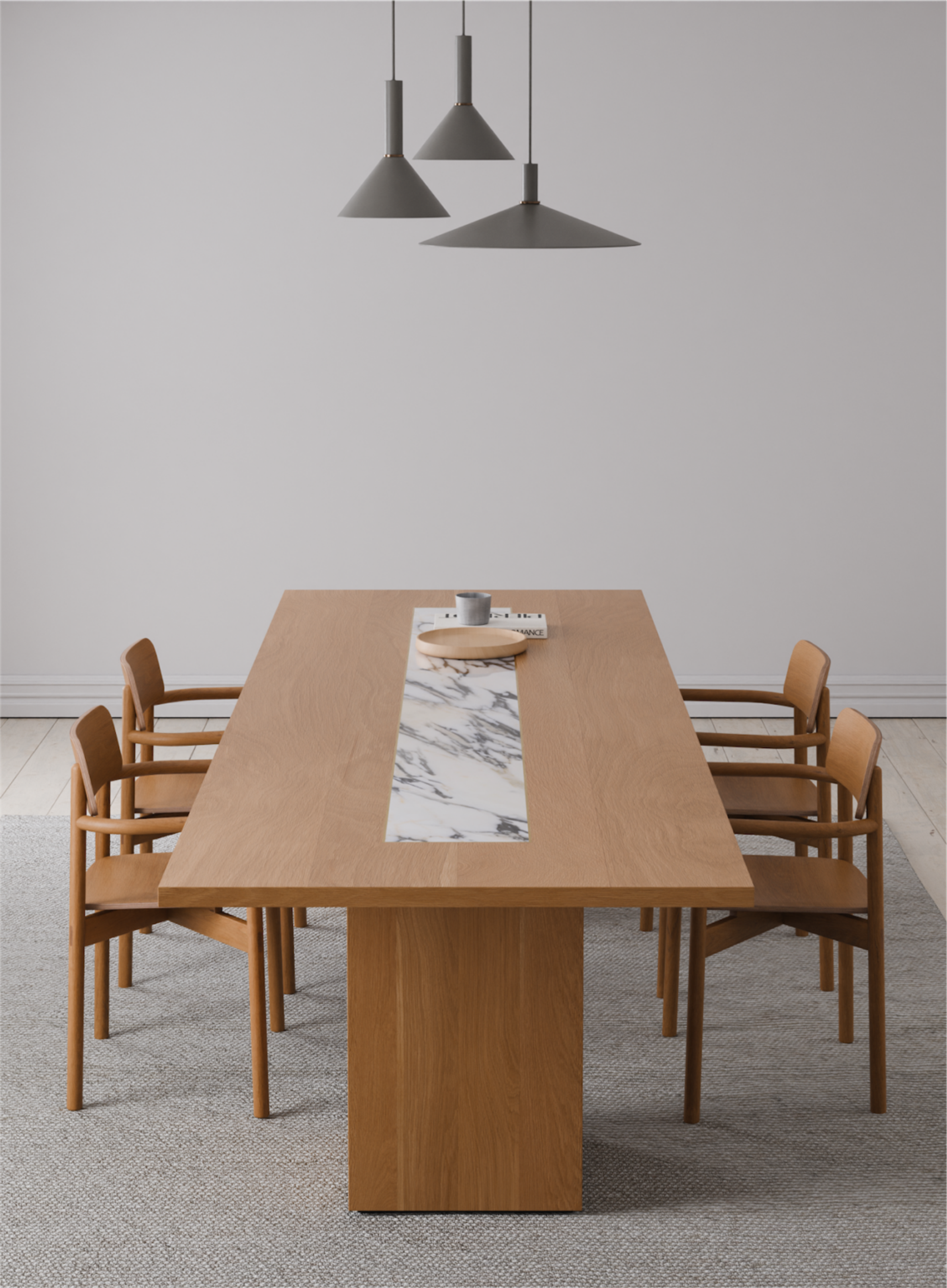 The Gathering Table collection has always stood as a testament to Nomi’s design philosophy, blending classic aesthetics with modern sensibilities. In response to feedback from our design community, the re-launch incorporates new features and enhancements, underpinned by the latest technology. This update introduces an interplay of material options, establishing a strong yet simple identity that honors craftsmanship.